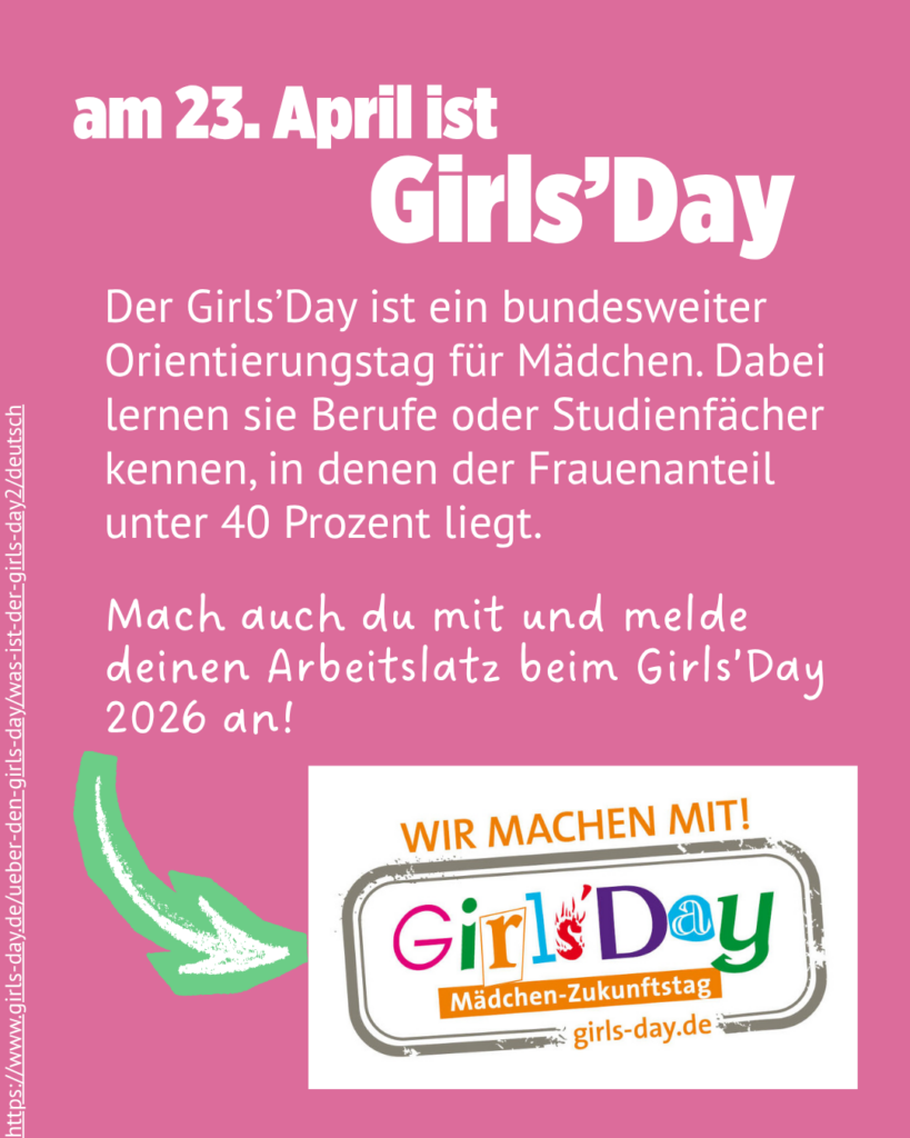 Am 23. April besuchen mich 15 Mädchen im Landtag und ich zeige ihnen meinen Arbeitsplatz, aber auch viele weitere Arbeitsbereiche in der Politik. Du hast auch Lust Mädchen, deinen Beruf zu zeigen? Dann melde deinen Arbeitsplatz hier noch beim Girls Day an.